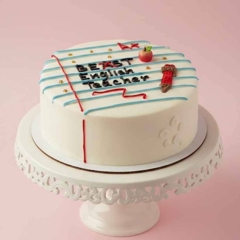 A clean, elegant cake with notebook-style detailing, perfect for thanking a teacher who inspires every day.