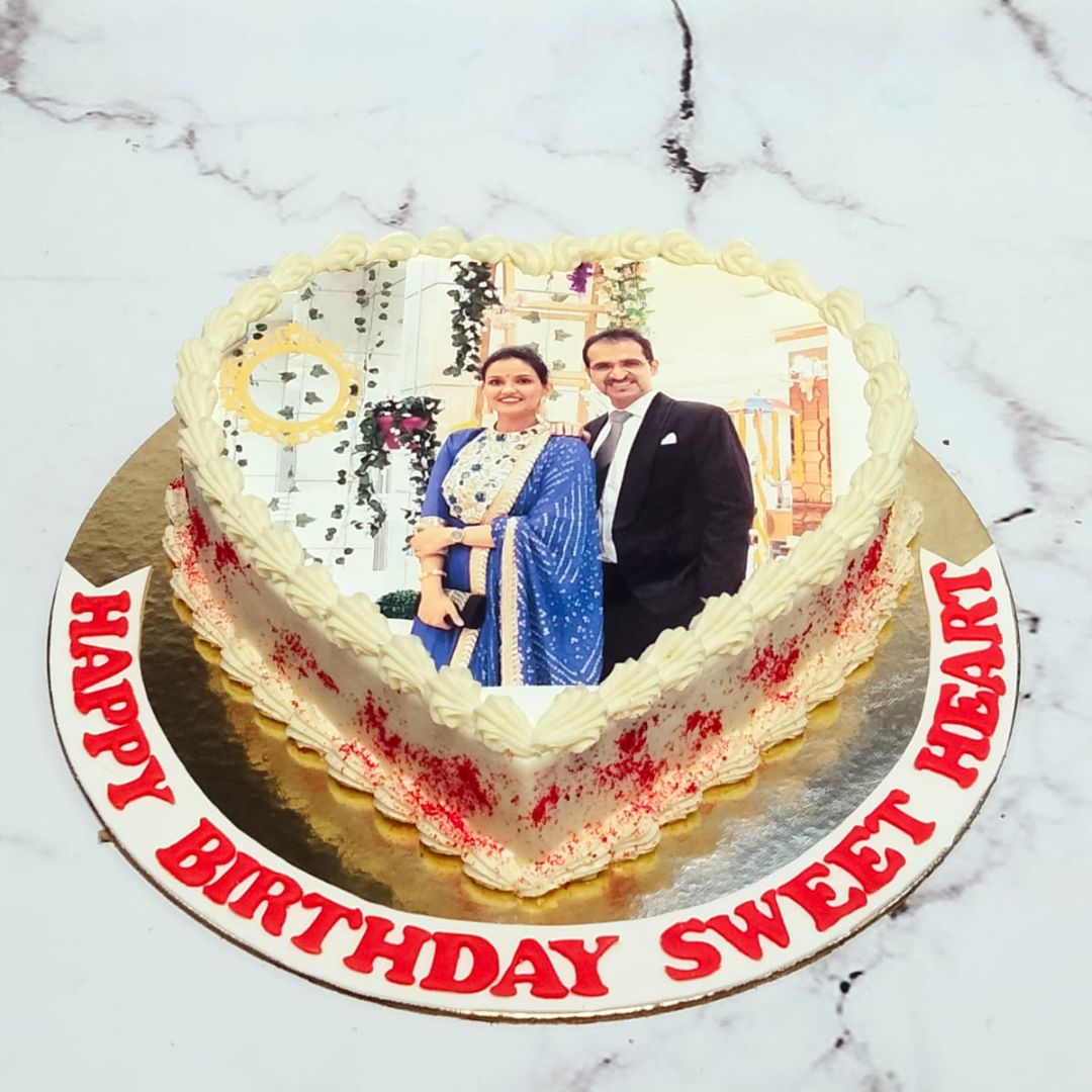 The Heart's Photograph Print Cake is a personalized and heartfelt treat, perfect for celebrating love and cherished memories! Featuring a printed photograph inside a heart-shaped design, this cake adds a personal touch to anniversaries, birthdays, or special occasions.